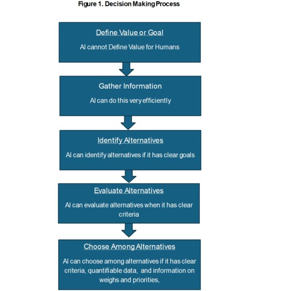 In this blog I am focusing on the potential role of AI in decision-making. To accomplish this, I interviewed OpenAI. I began by asking it to define steps in the decision-making process, and I received standard answers. I then asked for its capabilities to address the first five steps of this process. Conclusions at the end of blog are also using AI responses. I made only minor changes to them. These are the answers that I received: